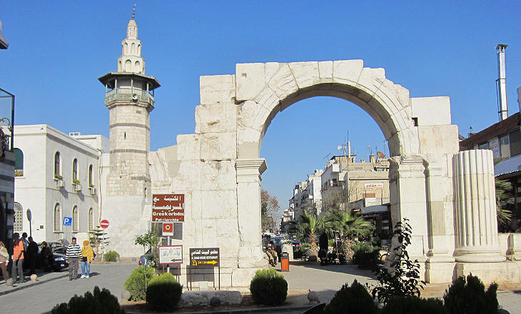 In the following years Ottoman authorities pulled down many small dwellings and Via Recta returned to be straight; during the French Mandate (1920-1946) the arch was reconstructed.