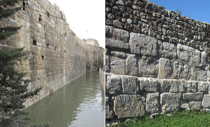 (left) Walls along the Barada River; (right) section of the ancient Roman walls near Bab Kissan