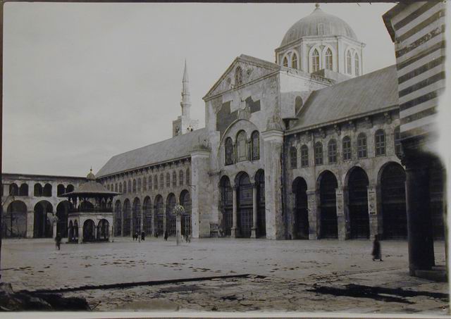 The site of the mosque was a church, and when the Muslims captured Damascus, one of their commanders entered from one side by the sword and reached as far as the middle of the church, while the other entered peaceably from the eastern side and reached the middle also. So the Muslims made the half of the church which they had entered by force into a mosque and the half which they had entered by peaceful agreement remained as a church.
