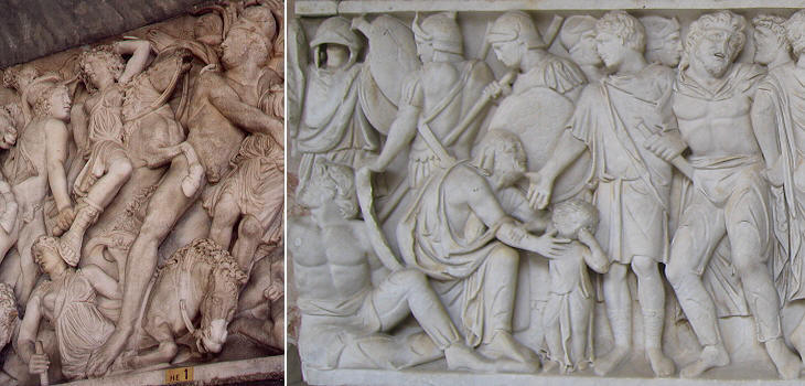 Musei Vaticani: reliefs depicting fights between Greeks and Amazons(left) and Romans and Germans (right)