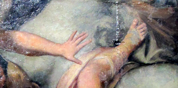 The detail above shows an example where toes add to the emotion expressed by fingers. By compressing our toes