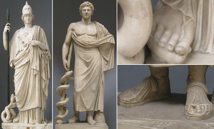 Musei Vaticani - Braccio Nuovo: (left) Athena; (centre) Aesculapius; (right) their feet