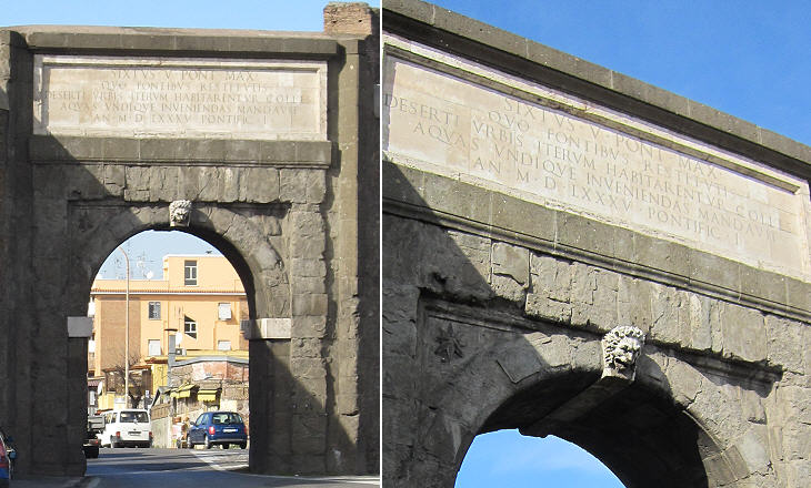 Pope Sixtus V celebrated the completion of Acqua Felice with a long inscription on the arch which crossed Via Tuscolana;