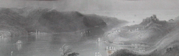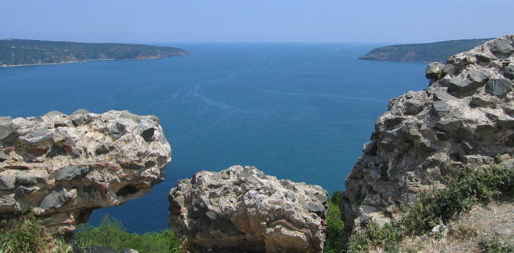 View of the final section of the Bosporus and of the Black Sea from the fortress (the image shows on the European side, and in the far distance the lighthouse of Rumeli Feneri, another Genoese base)