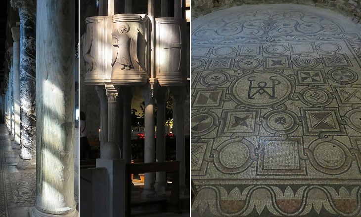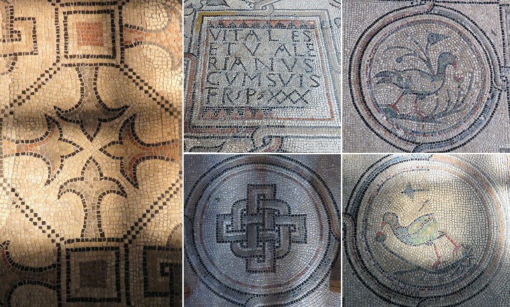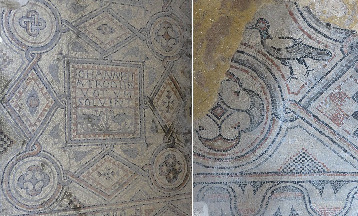 S. Maria delle Grazie: details of the mosaic floor. "Johannes et Afrodites votum solvent" means "(by) John and Aphrodite (not a very Christian name) in pursuance of a vow"