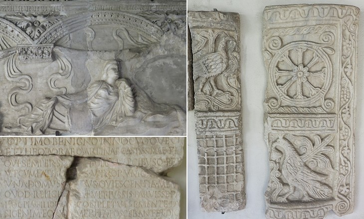Small museum behind the Cathedral: (left) funerary gravestones of the Roman period; (right) early medieval fragments of reliefs decorating a church