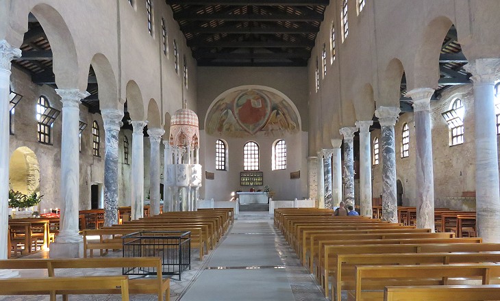 In 452 Attila the Hun set fire to Aquileia and the Bishop with many inhabitants of the city sought refuge in Grado. In ca 454 Bishop Niceta built two churches next to each other along the main street,