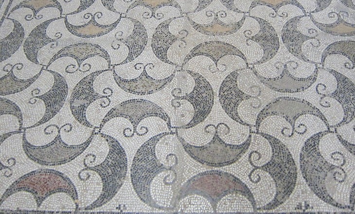 composed entirely of tesserae; there are no geometrically shaped pieces as in the later pavements