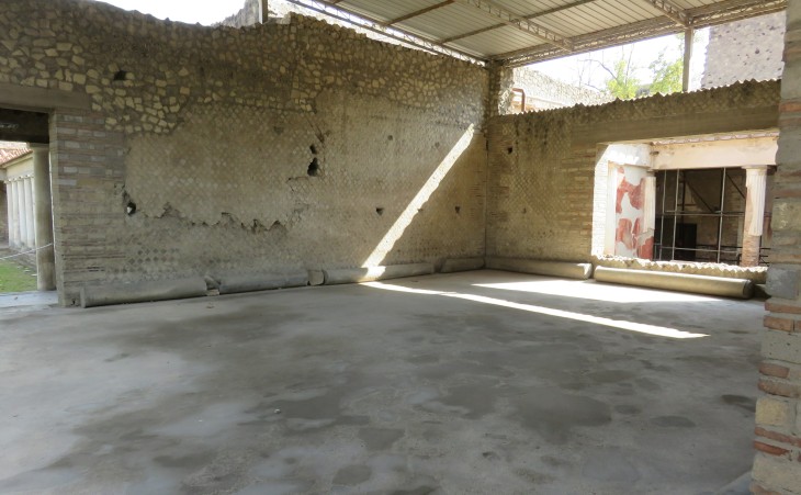 This portico faces south and it is rather peculiar because it could be closed by doors or draperies to prevent its becoming too hot in summer and to keep in the shade some sleeping rooms which were accessed from it. These might have been used for the somnus meridianus, the midday rest.