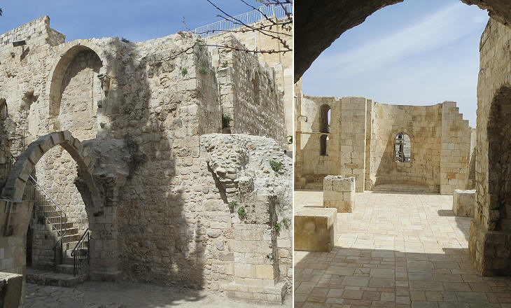 Ruins of Crusader churches and fragments of their decoration were brought to light in the late XIXth century or more recently when the Jewish Quarter was rebuilt.