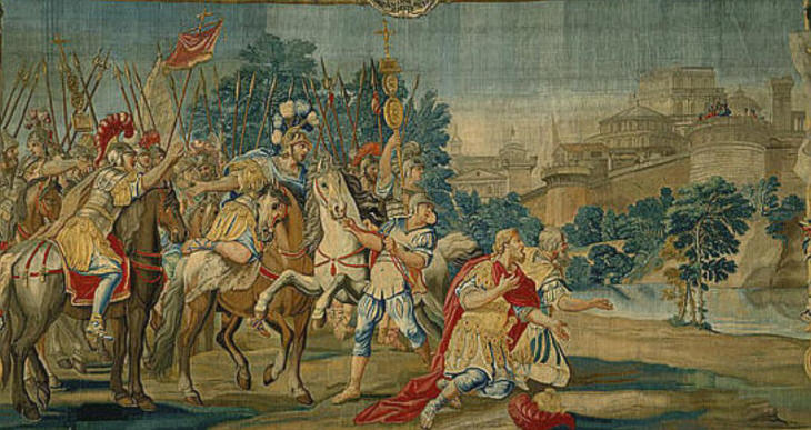 The Crusaders (portrayed as ancient Romans) first see Jerusalem - XVIIIth century backcloth for an opera based on "Jerusalem Delivered" by Torquato Tasso, a poem William Turner was familiar with (see other depictions of episodes of the poem)