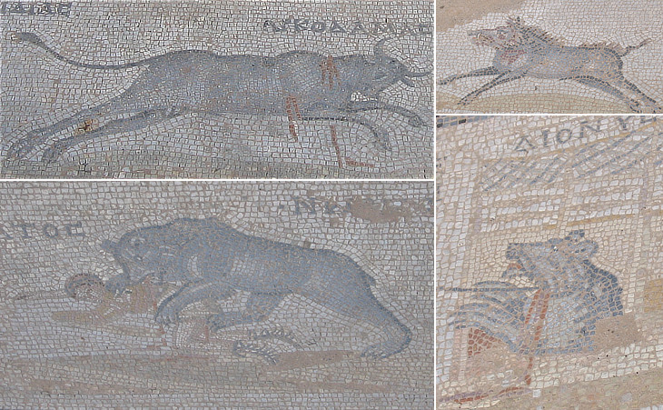 Details of "venationes", fights with beasts, surronding the mosaic with Apollo and the Muses