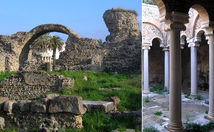 Western archaeological area: (left) ruins of the baths; (right) latrines