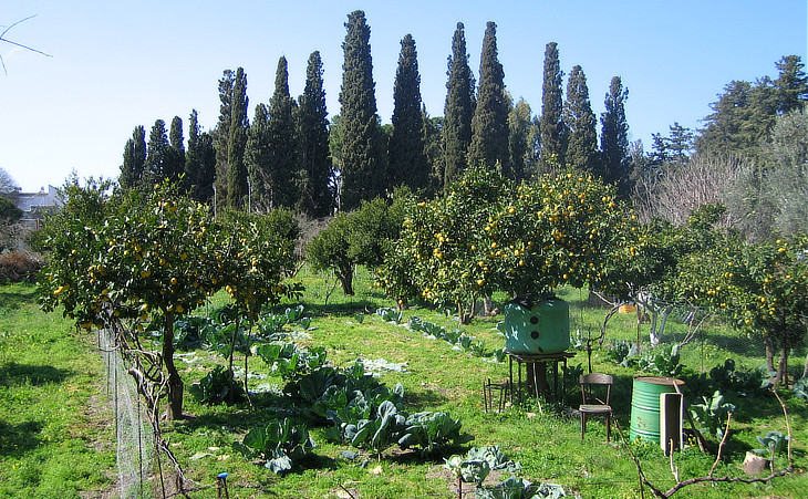 surrounded by extensive and fertile gardens, planted