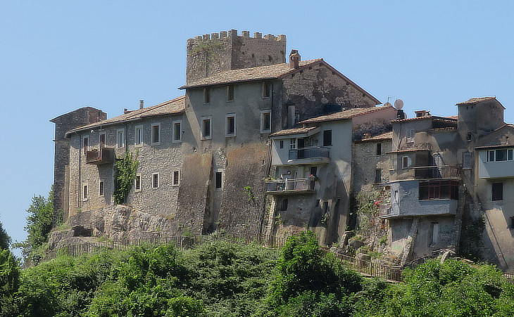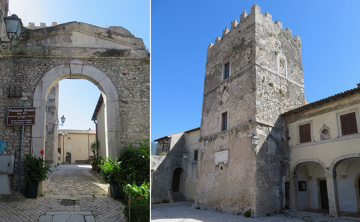 A typical characteristic of the landscape of the Apennines is to show evidence of Roman towns and monuments in the valley and medieval towers perched on an eagle's nest, e.g. at Gubbio. This can be noticed also in the valley of the River Licenza, where a precipitous rock permitted a handful of men to control the access to a small settlement. See a similar situation at Alba Fucens east of Licenza. The village was acquired by the Orsini, one of the most powerful Roman families, in the XIIIth century. It was part of a string of fiefdoms which at one point stretched from the Tyrrhenian Sea to the heart of Abruzzo.