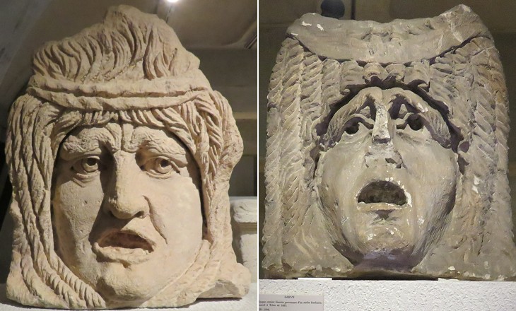 Funerary masks ("larvae") representing the spirits of the dead ("lemures") from a necropolis of Lyon (see similar ones at Cologne and Vaison)
