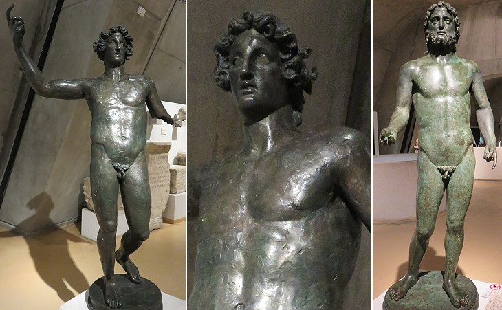 (left/centre) God of Coligny; (right) Neptune (IInd century AD - found in the River Rhône in town)
