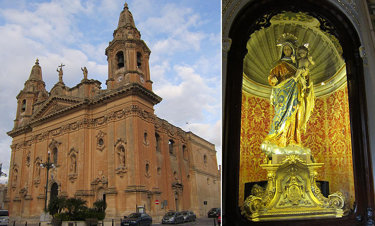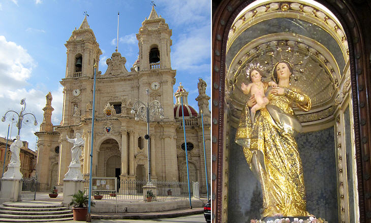 Naxxar: (left) Our Lady of Victories; (right) statue which is carried in procession