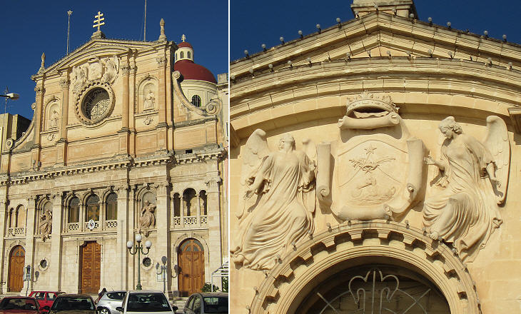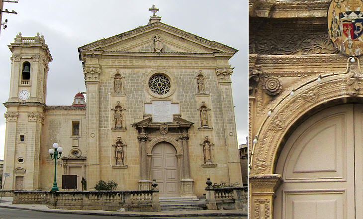 Attard: (left) Assumption of Our Lady; (right) detail of the portal
