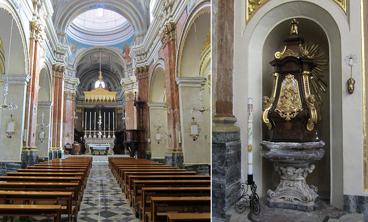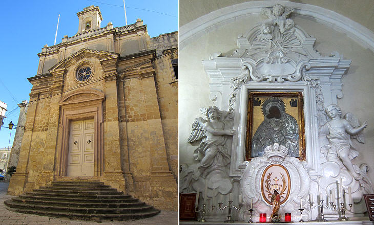 (left) Oratory of St. Joseph (it was built in 1832 on the site of Our Lady of Damascus); (right) altar with the icon of Our Lady of Damascus which the Knights carried with them when they left Rhodes