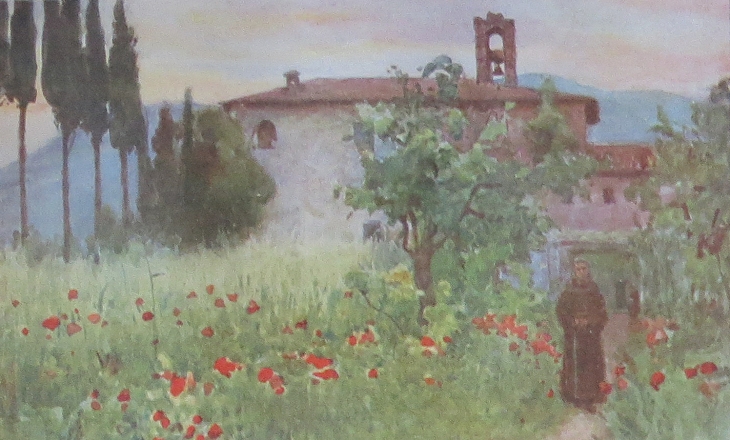 The garden of S. Cosimato seen by Alberto Pisa in ca 1905. This painting is one of a series commissioned to illustrate a Black's Beautiful Book.