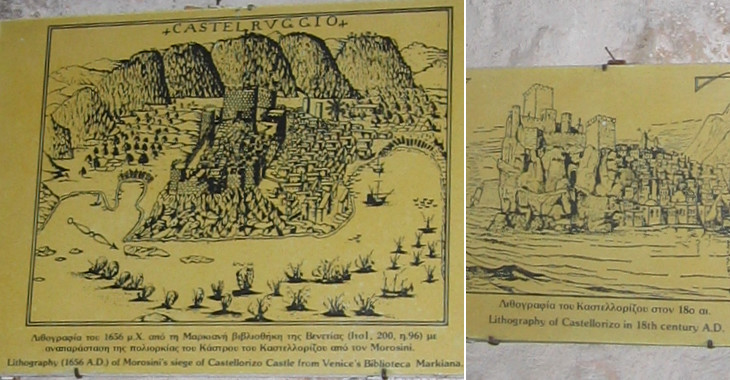Local small museum: (left) the Venetian siege of Castelrosso in 1656; (right) 18th century view of the town