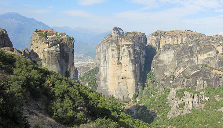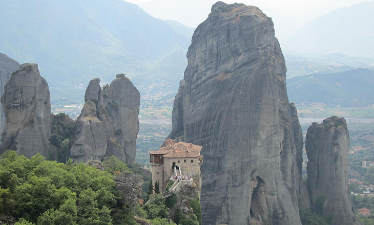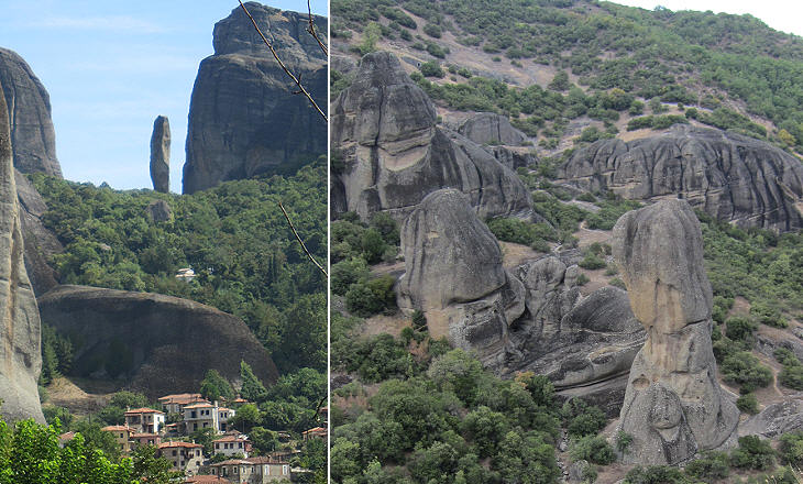 Central section of Meteora and in the foreground the Monastery of Rousanou