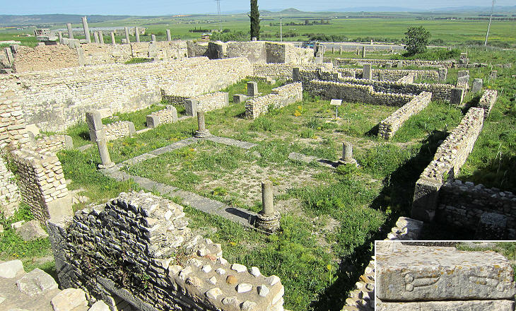 Archaeologists have identified the ruins of a Christian basilica near the Temple to Pluto. The baptistery was decorated with slabs of marble and, unlike most of those found elsewhere, it had a circular shape, rather than having the aspect of a cross as at Thuburbo Majus, El-Kantara in the south of the country and other locations. The three steps leading down into the font were a symbol of the Trinity.