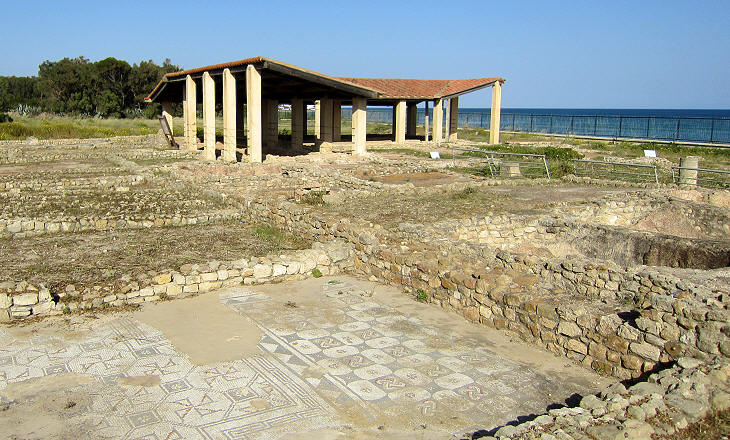 Another house with some fine elegant mosaics was found very near the sea. It probably belonged to the owner of an adjoining factory where garum, a fish based sauce, was manufactured and shipped. Amphorae full of powdery remains of garum with fish bones, fragments of vertebrae and tiny heads of small fry were found in the ruins of the factory.