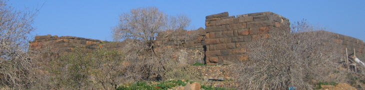 In the foundations of this fort are many traces of Hellenic work, especially to the east. To the south of the castle there is a break in the line of the hill, which was perhaps made by the knights as a kind of fosse. Dawkins & Wace