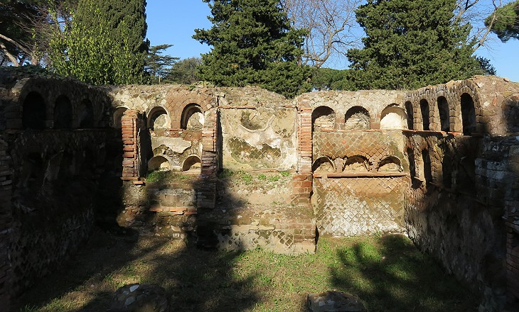 The low ruins of small houses and shops mentioned by Hare turned out to be a necropolis which stood outside Porta Romana along Via Ostiense. It was not the only necropolis of Ostia. A very large one was discovered at Pianabella, an area to the south of the town, and a small one outside Porta Laurentina.