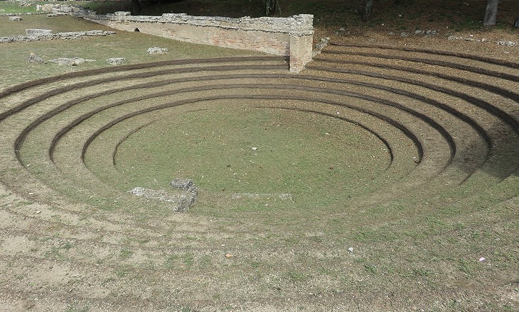 The amphitheatre stands near the northern side of the Forum and it was built in two phases. The central structure was made up of large sandstone blocks in the Ist century AD. It was enlarged in the following century by a series of brick pillars which supported an additional wooden seating section. Its size and construction technique when compared to the amphitheatre of Pompeii indicate that Paestum was not a main town of the region.