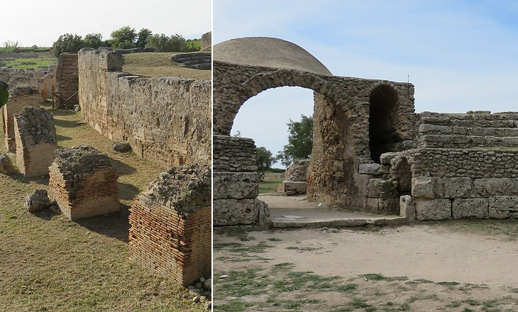 Forum: (above) view from the south-western corner; (below) southern portico