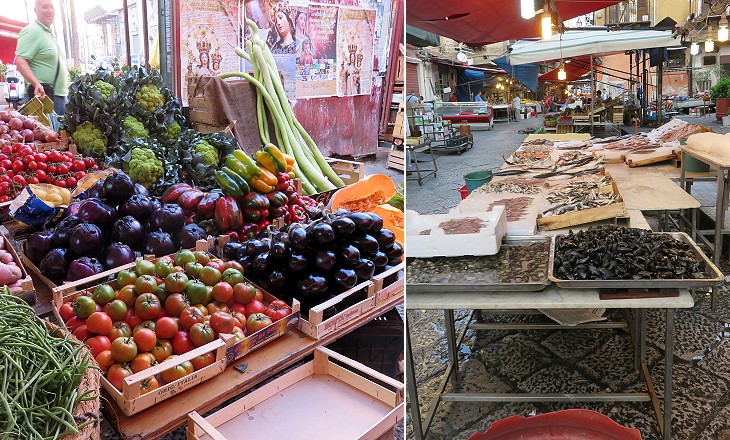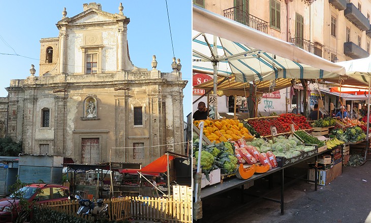 (left) S. Maria del Carmine a Ballarò; (right) a view of the market
