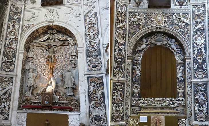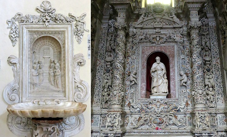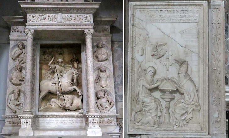 S. Francesco: (left) statue of St. George and reliefs by Antonello Gagini (1526); (right) St. Jerome and St. Gregory, relief by Francesco Laurana (1469)