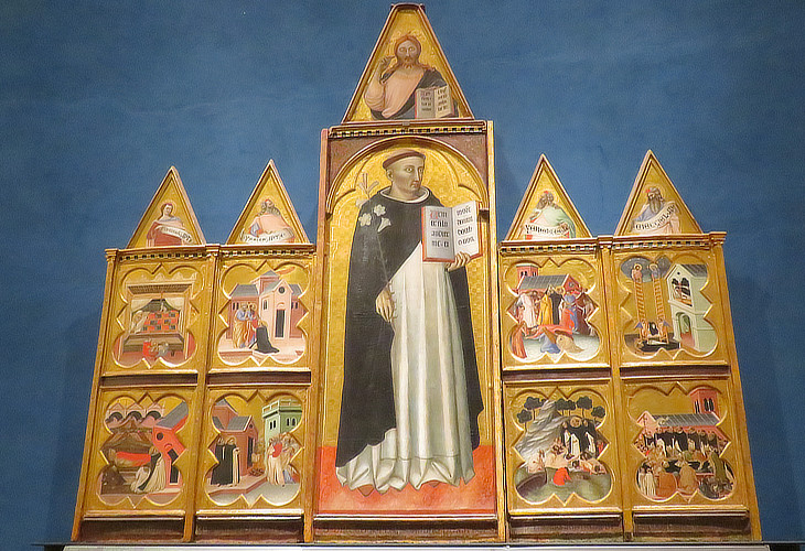 Museo Nazionale di S. Matteo: Triptych of S. Domenico, by Francesco Traini (1345) from S. Caterina; it depicts eight stories of his life