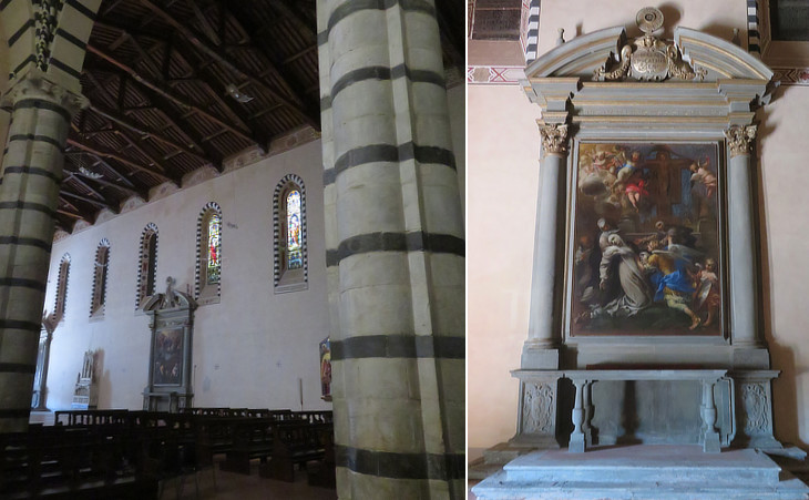 The interior, which is of the early part of the 13th centy. is fine: excepting the rows of granite columns, all the rest has been modernized. With the exception of a Virgin and Saints by Battista Lomi, over the high altar, which is tolerable, (..) the paintings are not remarkable Murray