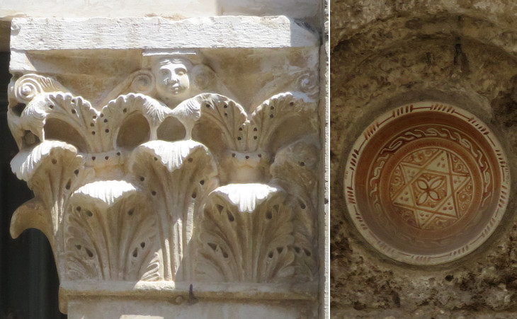 Very many historical churches of Pisa were decorated with ceramic basins which have all been relocated to Museo Nazionale di S. Matteo in the 1970s to avoid theft or damage. They are dated from the second half of the Xth century to the XVIIth century. Many of them came from Northern Africa and Andalusia. Starting from the XIIIth century, there is also extensive documentation of local productions. They can be noticed also in some Romanesque churches of Rome, especially in their bell towers (e.g. that of SS. Giovanni e Paolo).