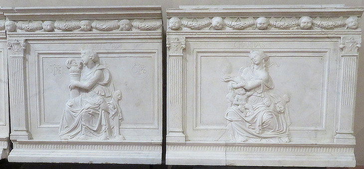 Museo Nazionale di S. Matteo: reliefs by Andrea di Francesco Guardi (1461) from a balustrade inside S. Maria della Spina: (left) Strength; (right) Charity