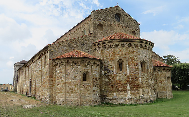 The current church was erected between the Xth and the XIIth centuries, but it is a very complex building in which many modifications have occurred. They have been identified by archaeological excavations carried out after WWII and parts of of the old buildings are partially visible inside the basilica. The first place of worship in this area dates back to the IVth century AD, although, according to the traditional account, in the year 44 AD St. Peter landed right here. It is said that during a terrible storm his ship sought shelter in this strip of land (Gradus Arnensis) that at the time was surrounded by the sea. He decided to erect a stone altar, the first in Italy.