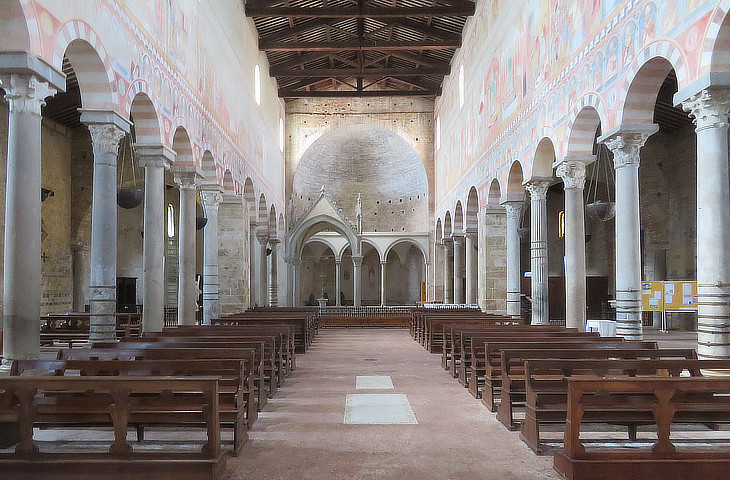 The interior is very well proportioned and it does convey the feeling of being inside an ancient building. Only the different capitals (partly Ionian, partly Corinthian) and stones of the columns indicate the medieval construction of the church. You may wish to see the interior of S. Maria Maggiore, the Roman basilica which best retains its original design.