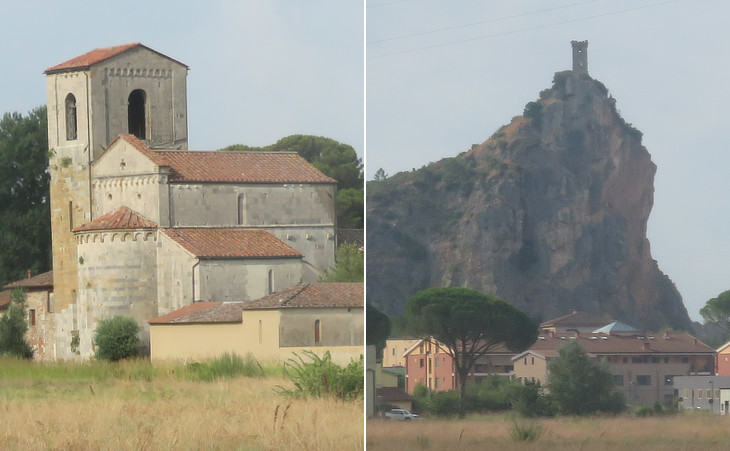 Caprona, on the road from Pisa to Vicopisano: (left) Pieve di Santa Giulia; (right) Torre degli Upezzinghi