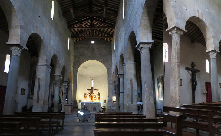 Pieve di Santa Maria: (left) interior; (right) ancient columns