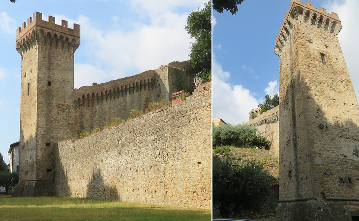 The most innovative aspect of the new fortress was the battlemented massive wall that descended from the Rocca to the base of the hill, ending at Torre del Soccorso, a very high tower, which at the time was situated near the river Arno. From that tower the garrison could receive support from Florence: the boats docked at a little fortified cove and unloaded gun powder, provisions and military reinforcements. Soldiers reached the second floor of the tower through a narrow gate and by means of ladders. From that position they were able to access the wall and go up towards the Rocca across a drawbridge.