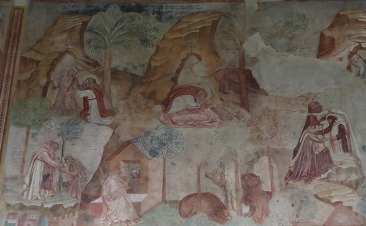 The Thebaid (The Hermits of the Egyptian Desert) by Buonamico Buffalmacco - detail (see the frescoes in the Cloister of S. Onofrio in Rome which depict similar scenes)