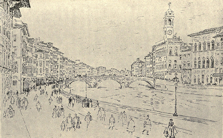 The Lungarno and Ponte di Mezzo, illustration from "Dean Howells - Italian Journeys - 1867"