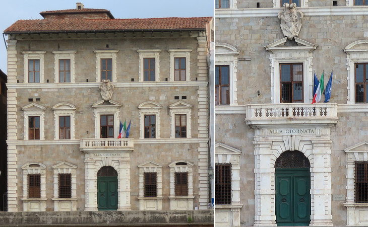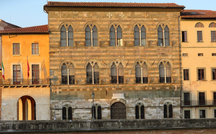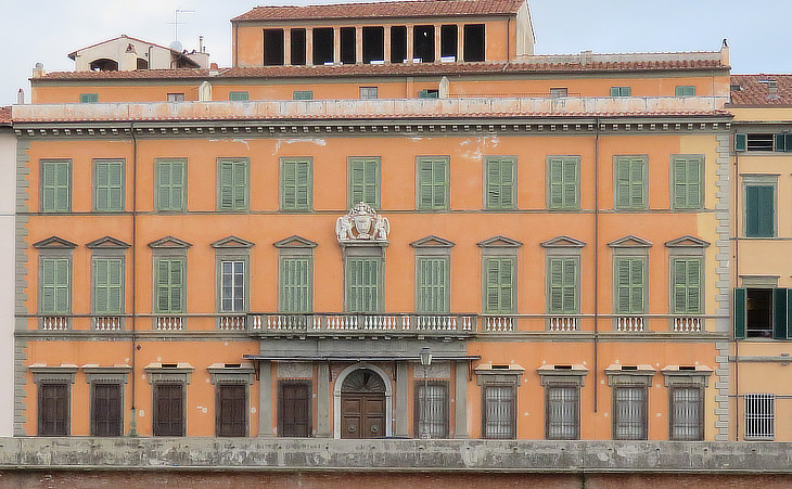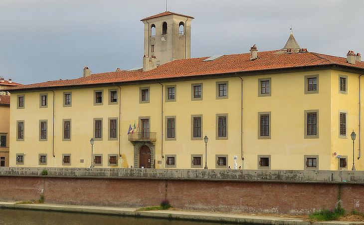 The long building was designed by Bernardo Buontalenti, a Florentine architect, in 1583. It incorporated already existing medieval buildings, including a tall tower from which a covered passage connected the palace to the church of S. Nicola. The Grand Dukes usually spent part of the winter at Pisa which enjoys a climate milder than that of Florence. The palace was heavily damaged by WWII bombings. Today it houses a museum with collections illustrating the patronage of the Medici and of the Habsburg-Lorena who left