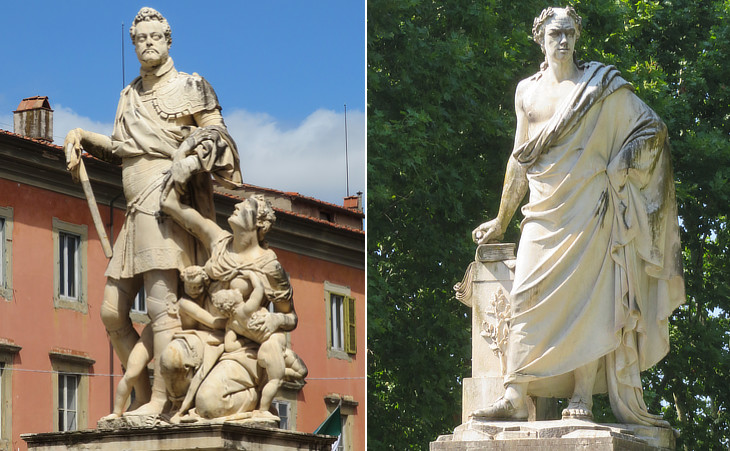 The 1846 Monument to Grand Duke Leopold II at Grosseto combines elements from the two statues at Pisa.