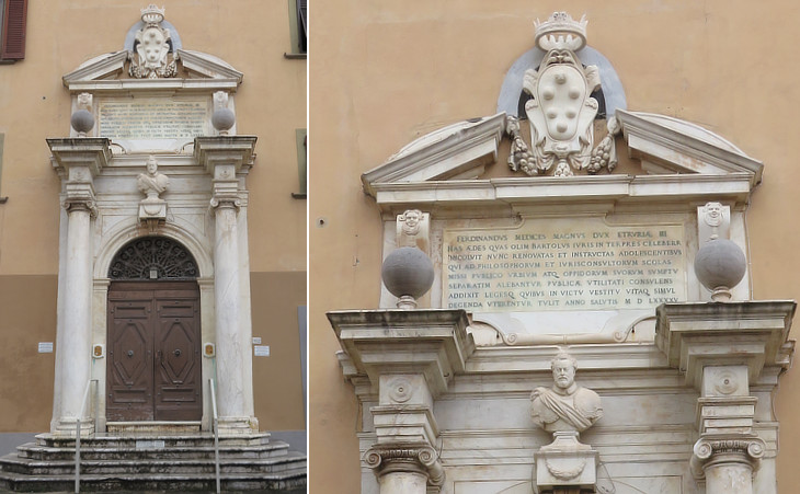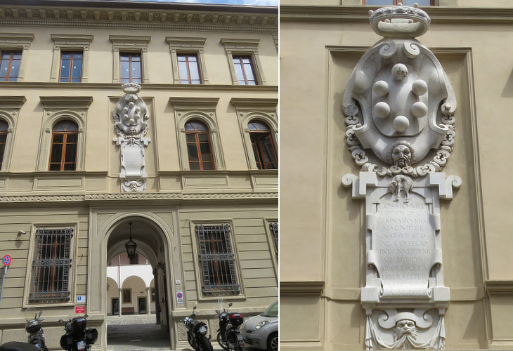 Università della Sapienza (today the Faculty of Law) and coat of arms of Grand Duke Cosimo I with the Collar of the Golden Fleece and a 1550 inscription celebrating the foundation of the college