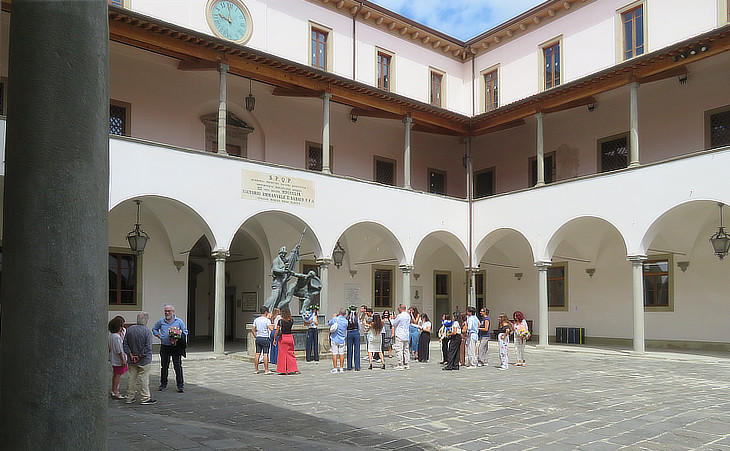 Courtyard with a Monument to the students who fell at Curtatone and Montanara in 1848 and an inscription celebrating the reopening of all faculties of the University in December 1859 in which Victor Emmanuel II of Savoy is referred to as Elected King of Central Italy